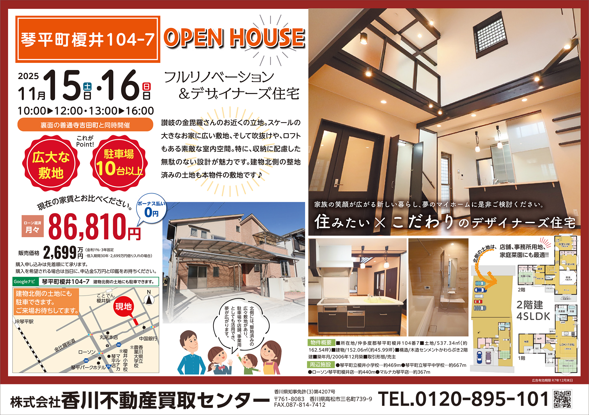 香川県に密着した会社なので、安心感が違います。住宅ローンや残債が残る場合も、金融機関との折衝を行います。また、中古不動産売買時におけるリフォーム・リノベーションのご提案や、競売代行・事業再生・破産管財処分・任意売却などにおいても、全て秘密厳守にてお客様をサポートいたします。